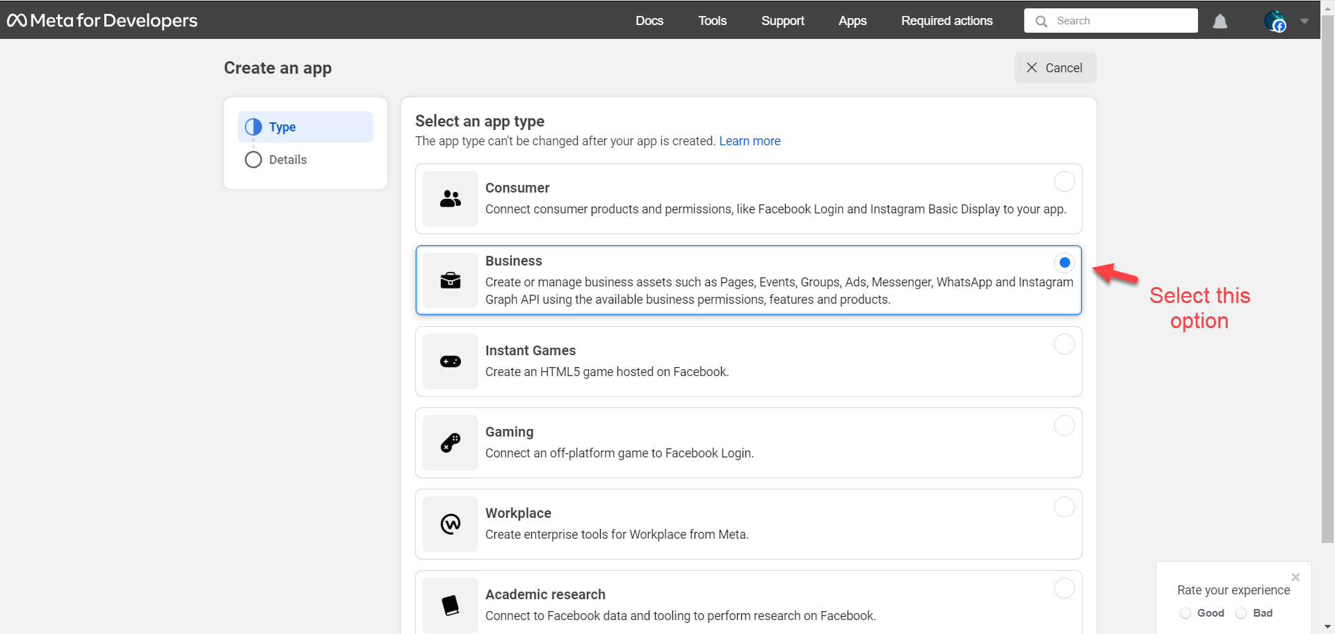 7. On the App Dashboard, click “Setup” under Facebook Login for Business.